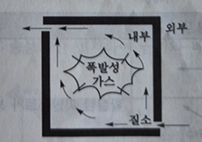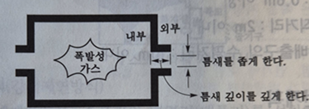 폭발성 가스가 용기 내부에서 폭발하였을 때 용기가 그 압력에 견디거나 또는 외부의 폭발성 가스에 인화될 우려가 없도록 한 구조
