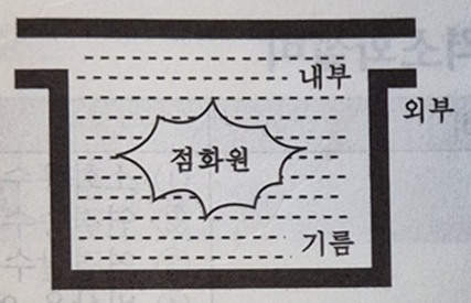 전기불꽃, 아크 또는 고온이 발생하는 부분을 기름 속에 넣어 폭발성 가스에 의해 인화가 되지 않도록 한 구조