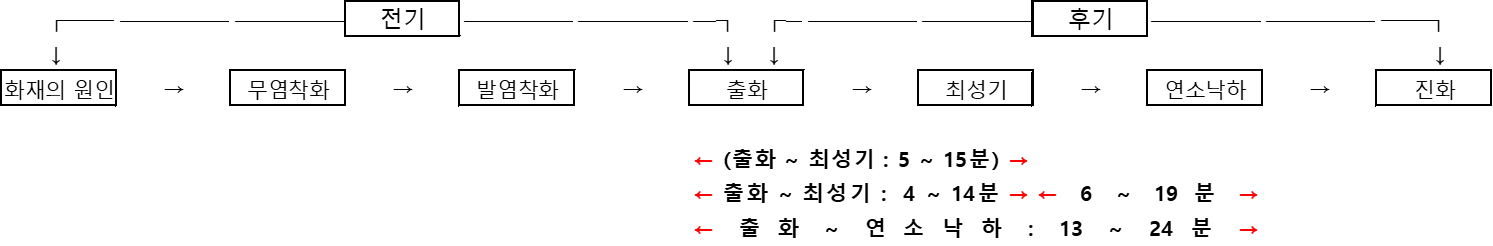 * 처음에는 백색 연기가 발생하며, 시간이 점점 지날수록 흑색 연기가 창, 확기구 등으로 분출된다